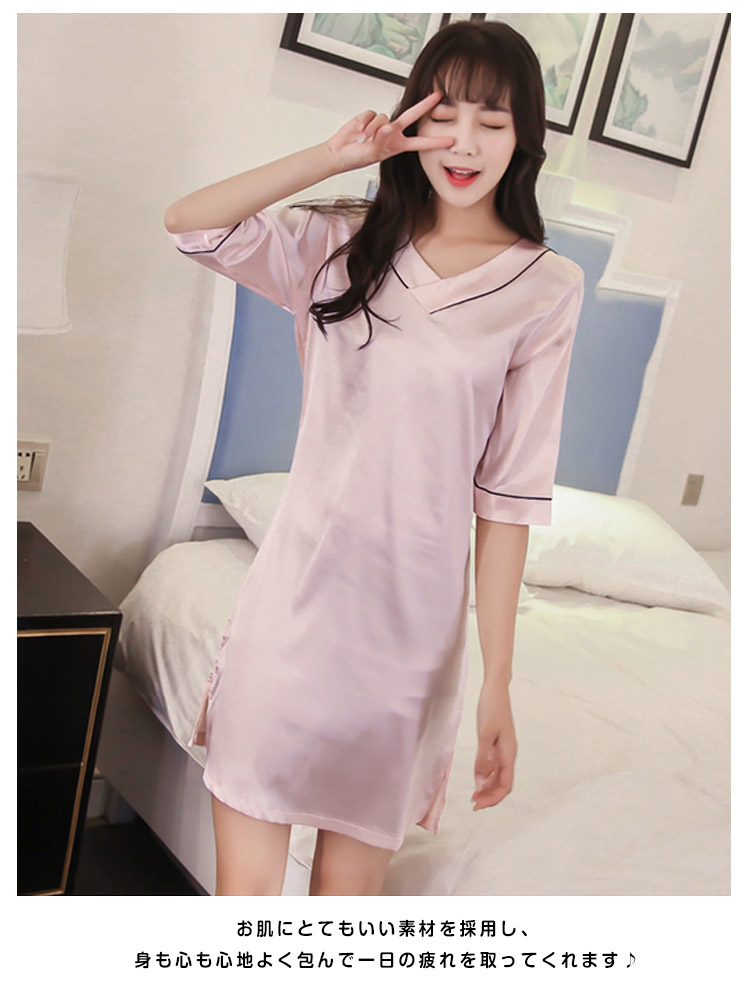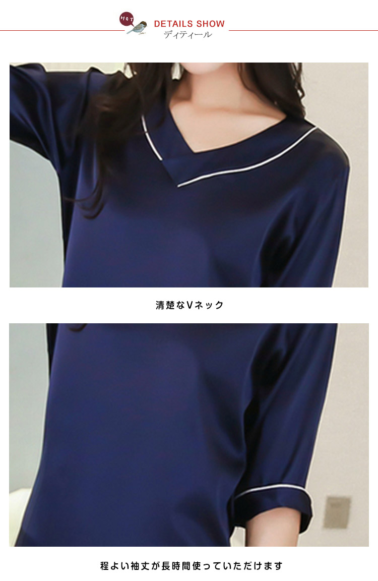 | すべ?すべ?滑らかな肌触りが一度穿くとやみつきに真珠のようにキレイな艶感と滑らかな肌触りに夢中♪襟ぐりと袖口に丁寧にパイピングされ、大人上品な印象◎お肌にとてもいい素材を採用し、身も心も心地よく包んで一日の疲れを取ってくれます♪煌くシルク調の1枚はプレゼントにもお薦め。 | |
