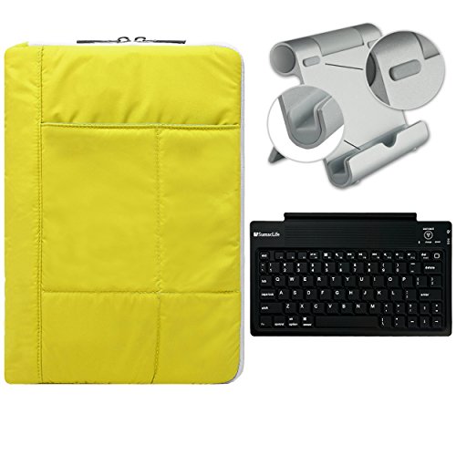 Includes: - Includes a Slim Travel Wireless Bluetooth Keyboard -Includes a high quality foldable stand fits anywhere made strong and sturdy. Adjustable for Multi Angles. Suitable for Tablet Smartphones and eReaders Devices 0