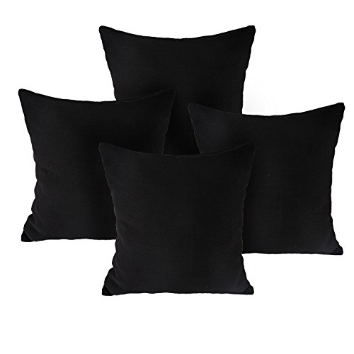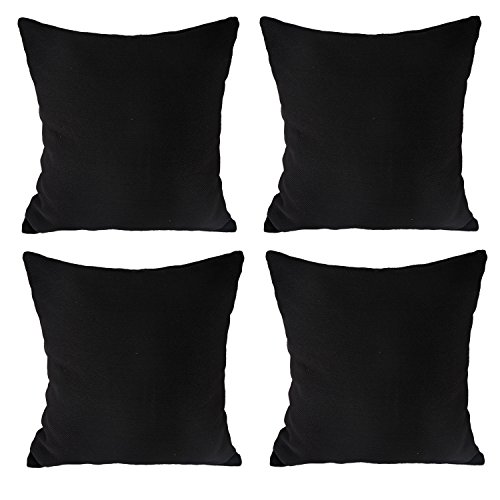 Deconovo Faux Linen Look Hand Made Pillow Case Cushion Cover With Invisible Zipper For Sofa 18x18 Inch Black 4Pcs