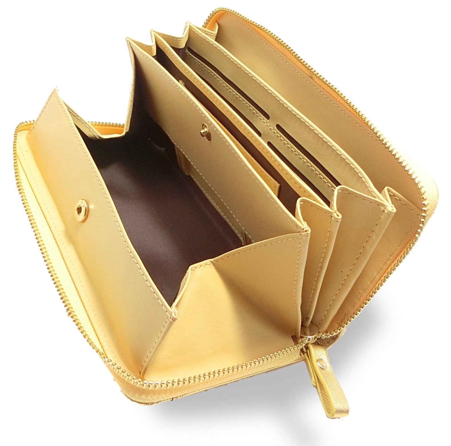 開 Since the opening and closing of the wallet is a round fastener and a bellows method, it can widen the wallet greatly and the contents of the wallet can be seen well.