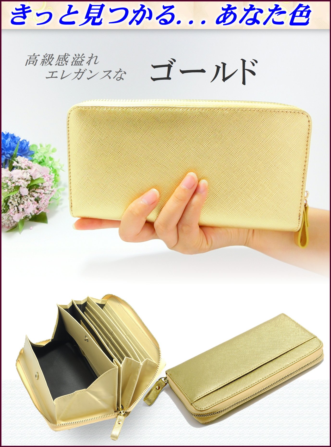 表面 The surface of the wallet is a shiny texture, directing a simple yet elegant atmosphere.