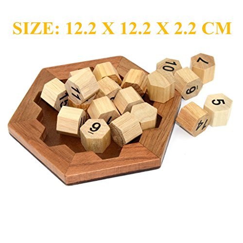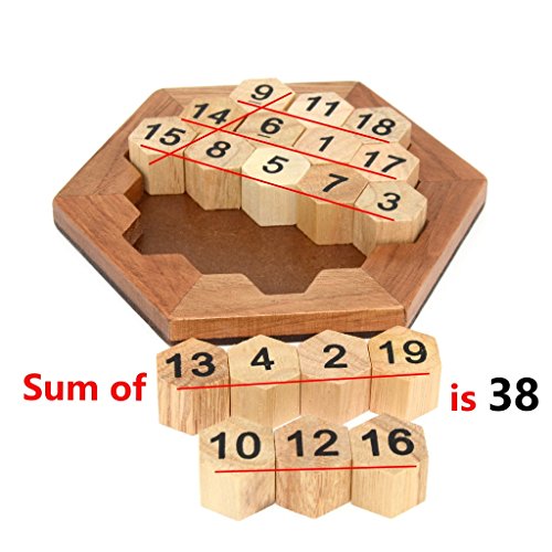 -. Binding : Toy -. Brand : KINGOU -. EAN : 0756330465940 -. Feature : Material: High quality timber. Size: 4.8 x 4.8 inch / Mission -- To make every row add up to 38. There are 15 rows in all directions to complete, each made up of 3, 4 or 5 pieces / Recommended for ages 10 & up, children should be used under adult supervision, water-based paint, touch smooth. / It is a great toy for exercise your brain, problem solving and logic thinking. / Challenge and Fun for the whole family -. IsAdultProduct : 0 -. Label : KINGOU -. Manufacturer : KINGOU -. MPN : Puzzle-146 -. PackageQuantity : 1 -. PartNumber : Puzzle-146 -. ProductGroup : Toy -. ProductTypeName : TOYS_AND_GAMES -. Publisher : KINGOU -. Studio : KINGOU -. Title : KINGOU Wooden Logic Puzzle Brain Teasers Intellectual Toy Number Puzzle -. UPC : 756330465940