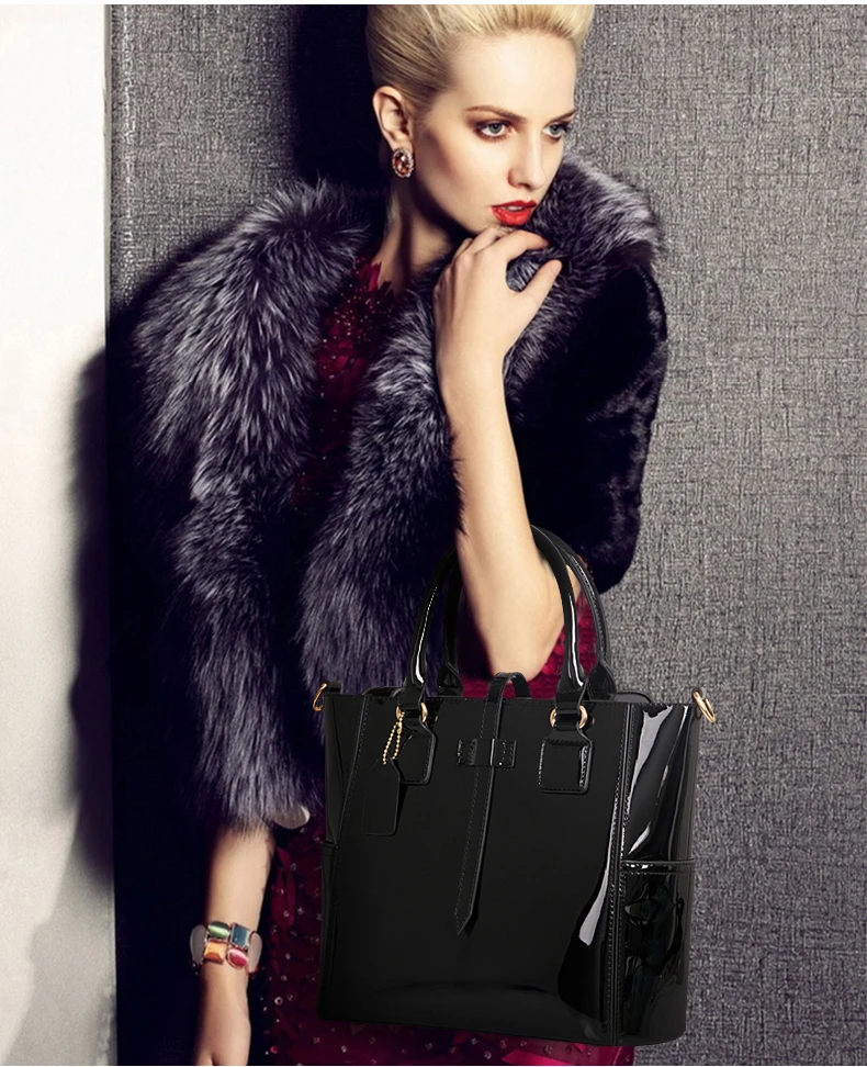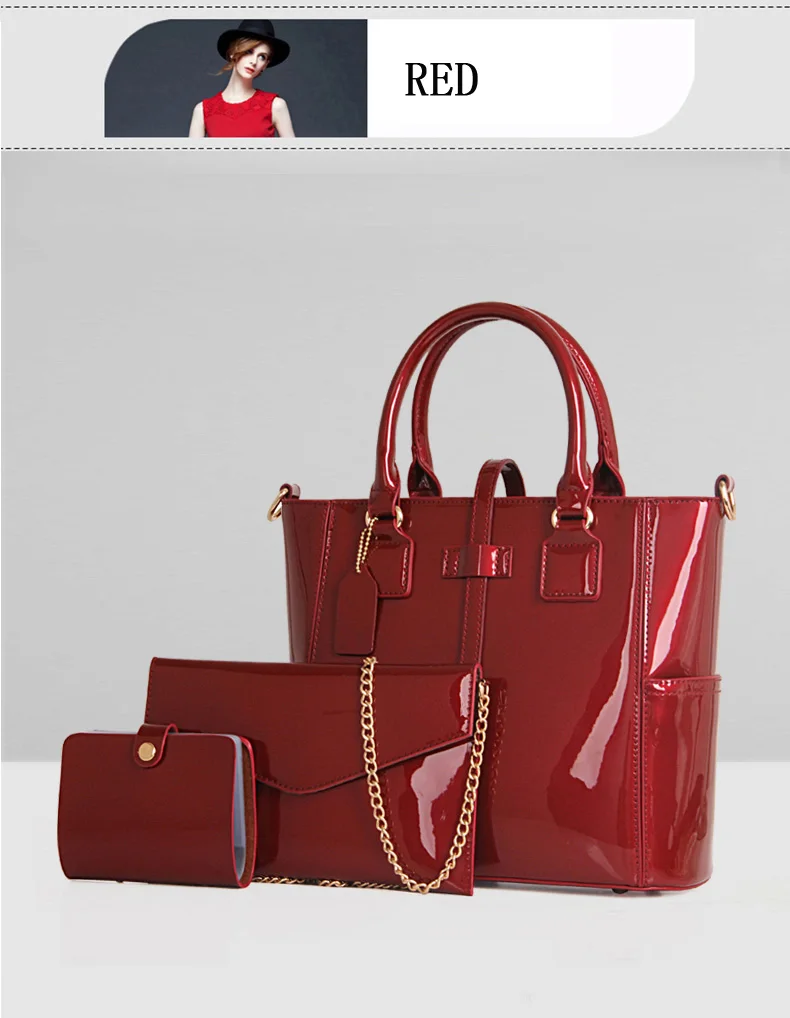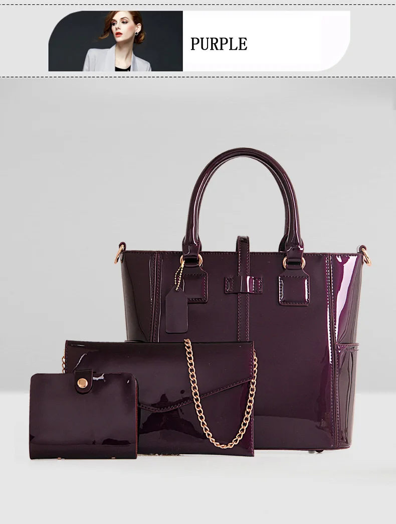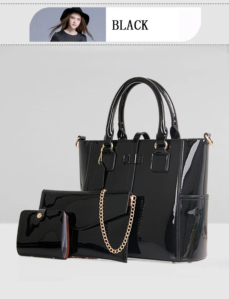 Style 3:patent leather tote bag/women bag set