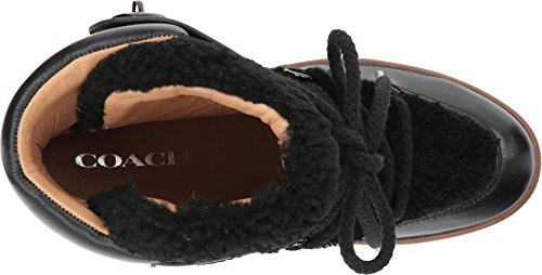 Studio : Coach Publisher : Coach Binding : Apparel Product Description Genuine curly shearling puts a plush spin on this sneaker-bootie hybrid, beautifully crafted in fine calf leather and finished with an iconic Coach turnlock. A hidden wedge elevates the sport-luxe design, while rubber outsoles provide no-slip comfort. 2.75" heel Genuine used sheep shearling; origin: Australia; dyed Calf leather/genuine curly shearling upper; lining: leather; rubber sole Imported For decades, COACH, the iconic luxury leather goods company has been making clothing, shoes, bags, accessories, watches and fine jewelry. All of it's intricately finished by hand leather goods are perfect for every day wear and for every occasion. At our store, we carry a wide selection of COACH shoes with an array of sizes and wide width footwear styles to choose from. Our extensive COACH shoe line includes, fine leather ankle boots, tall boots, wide width boots and riding boots to wear every day. Our COACH flats and flat sandals will pair perfectly with your casual every day outfits. Our COACH leather pumps will make your wear-to-work outfit. The high heeled sandals and leather heels are perfect to wear from day to evening for any occasion. The thong sandals are the perfect option for a day by the pool or beach and the espadrille slip-ons are the perfect shoe for running errands for the busy but fashionable woman. Because COACH shoes will never go out of season or style, they will always be the perfect shoe for woman of every age and with every style. 0