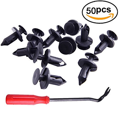 Nylon Bumper Fastener Rivet Clips and One Plastic Fastener Remover Automotive Furniture Assembly Expansion Screws Kit Auto Body Clips 8mm - 50PCS