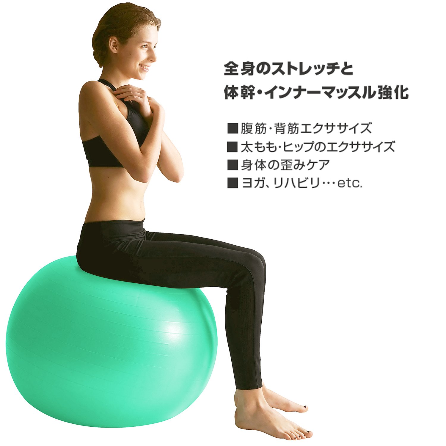 Using the momentum and rolling of the ball, exercises of the abdominal muscles / back muscles and thighs and hips