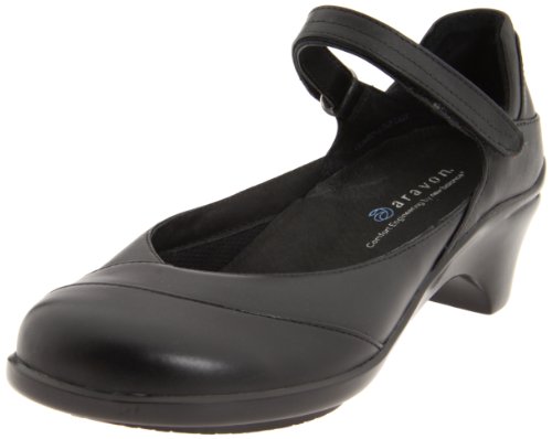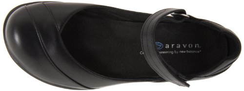 Increase your comfort level without sacrificing style in the Aravon Maya mary jane. The leather or metallic leather upper features simple, modern lines; an adjustable strap with a hook-and-loop closure provides a snug fit. The removable EVA Velocor� footbed offers a deep heel cup, a metatarsal bump, and arch support to keep you comfortable. Abzorb� cushioning in the forefoot benefits the legs, knees, and hips. The Stridarc� rocker sole works to eliminate foot fatigue as you wear the Aravon Maya throughout your busy day. Fit tip: This shoe has a generous toe box and instep.Feature