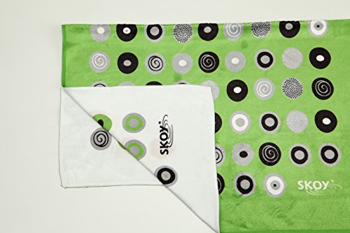 Bundle of 7 items includes one 4-pack Skoy 7"x7" Dish Cloths (assorted colors), one green Skoy 18"x24" 100% recycled polyester kitchen towel, and two Loofah Art RubBit loofah scrubbing sponges 3"x5"x1"(green and yellow)