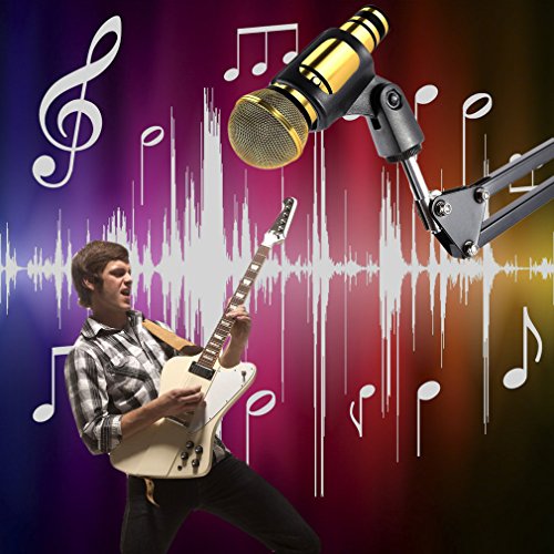-. Feature : Folding design:Convenient to carry. The adjustable arms allow you to carry it with you easily and adjust the suitable angle and height to show your perfect voice. / Sturdy and Durable: The adjustable Black Scissor Arm Stand is made of high quality steel frame, plastic Mic Clip (INCLUDED), make it attach firmly. Dual suspension sP.R.Ings on each boom arm to protect microphone from suddenly dropping. / Heavy Duty Carry: Compact microphone stand designed for heavy duty carry. Suitable for any stores, families, stages, studios, broadcasting and TV stations, etc. Completely flexible, firmly attach the microphone anywhere. / Portable and Easy set-up: fold it when unused, and can take it anywhere when go out or travel, did not occupy large space. Easy setup let you quickly show your voice and enjoy your music. / Please Note:Max. Microphone Clip Diameter is 1.26in/32mm; The Stand is NOT Suitable for Blue Yeti USB Microphone.