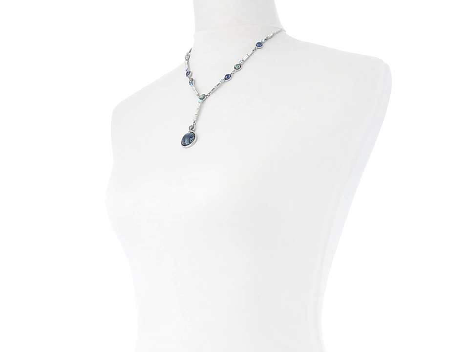 Alluring necklace made with Swarovski crystals, blue-green bezel stations and antique silver plating. Part of the Ben-Amun Eclipse Collection that conjures elements of intrigue and beauty of any casual and evening wear of your choice.
