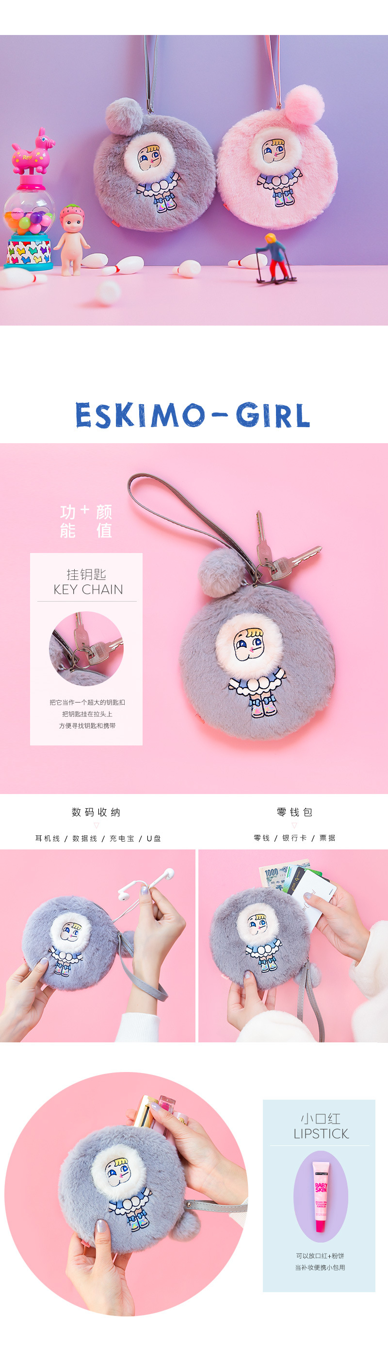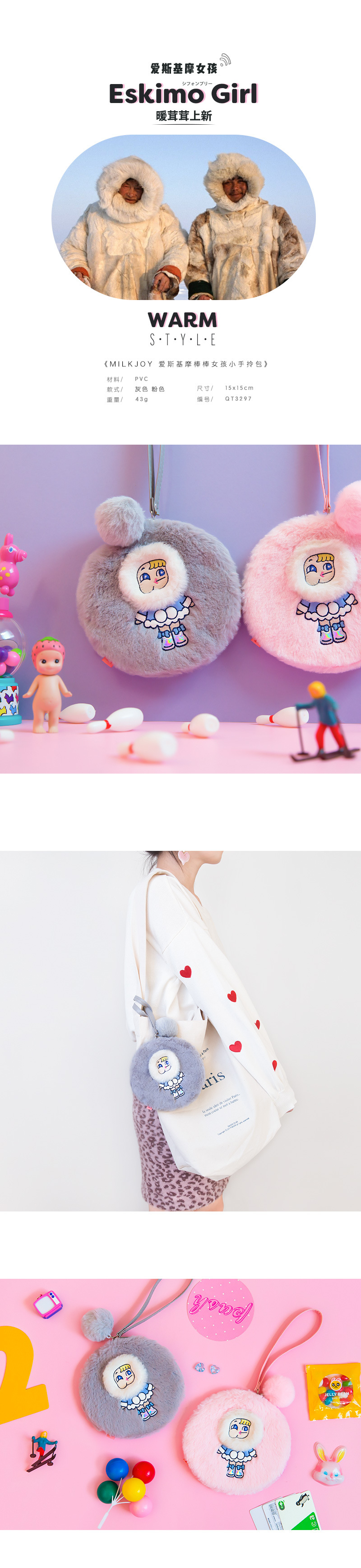 Milkjoyスティックぬいぐるみラウンドクラッチ原宿スタイルイン風ガールかわいい小銭入れ