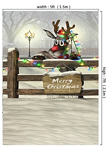 5x7ft Christmas Photo Backgrounds Wrinkle free Winter Snow & Red nose Santa Reindeer Photography Backdrops wdsd044