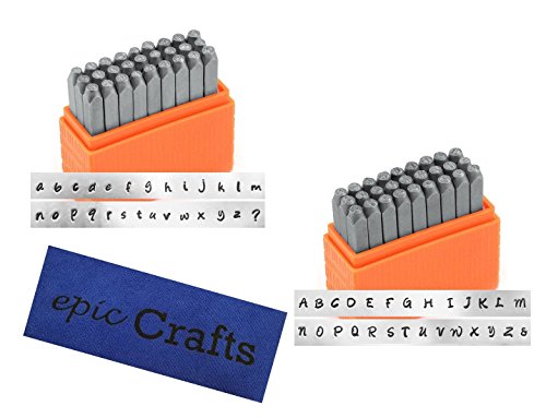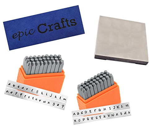 Metal Letter Stamp Set Basic Bridgette Uppercase and Lowercase Bundled with ImpressArt Metal Stamping Block and Epic Crafts Microfiber Cloth