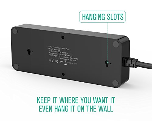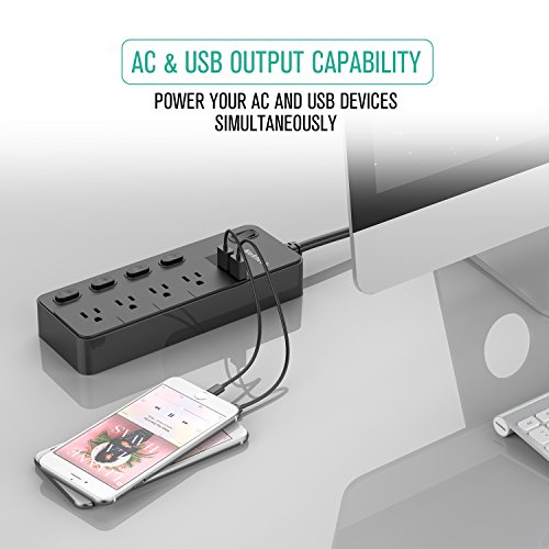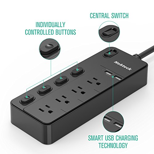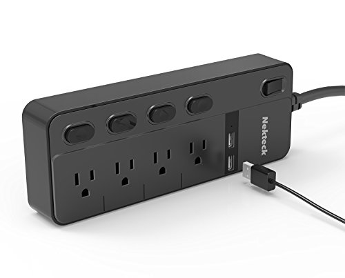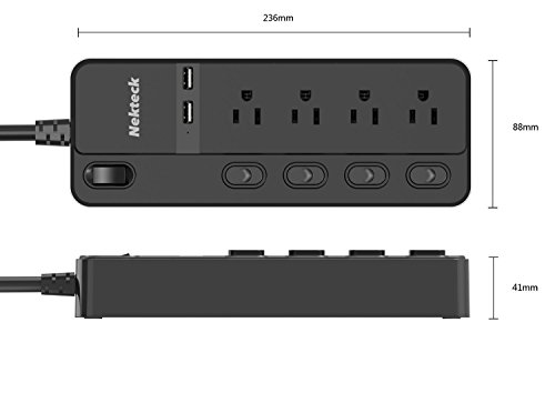 MULTI-OUTLET FUNCTION WITH OUTLET CONTROL: The Nekteck Surge Protector has 4.8ft cord 4 surge-protected AC outlets with outlet control to avoid plugging and unplugging of devices and 2 built-in USB ports that delivers up to 5V 2.4A maximum per port; fast and reliable