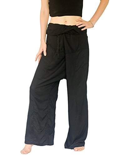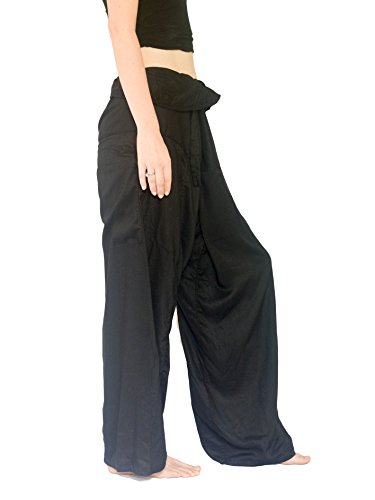 Orient Trail Women's Rayon Hippie Free Size Dance Yoga Fisherman Pants M/L Black Fits US Size 6-14