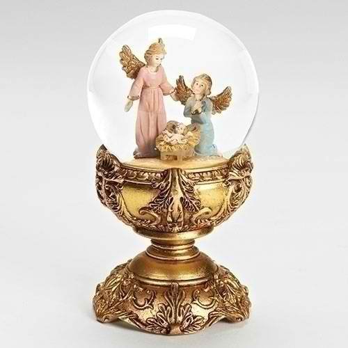 Roman, ANGELS W/BABE PEDESTAL GLITTER DOME GOLD FINISH 80MM DOME