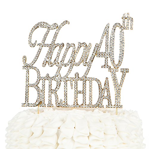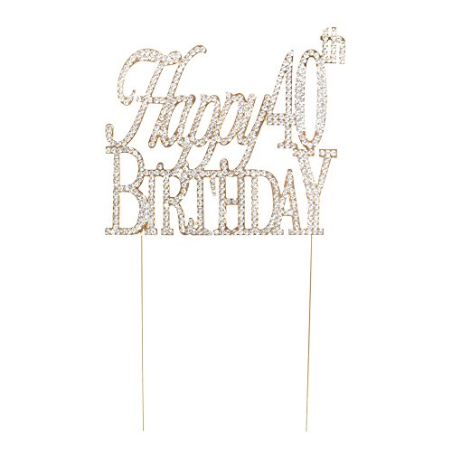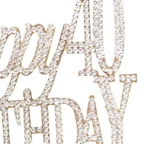 Happy 40th Birthday Cake Topper, Gold 40 Party Crystal Rhinestone Decoration (Happy 40th Birthday Gold)