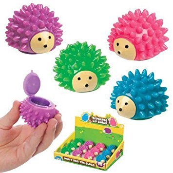 These adorable little hedgehogs have a hinged lid on the bottom, hiding a cache of scented lip-gloss. They measure 2 inches and come in assorted colors and scents