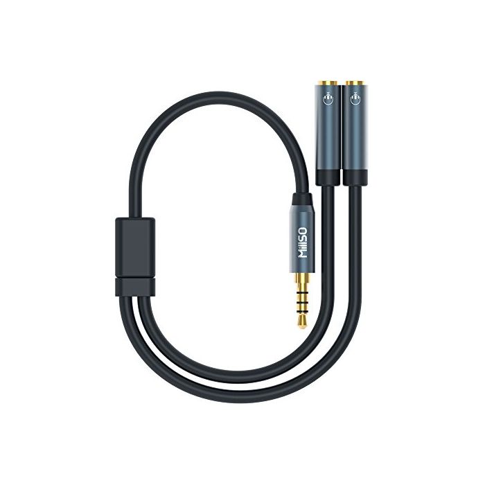 MillSO 3.5mm오디오 분배 케이블 음성 출력 분기 코드 이어폰 마이크 기능 탑재 스테레오 미니Y분기 잭 Connector 케이블 4 극메스*2-4 극수컷*1 연장 코드 다용형