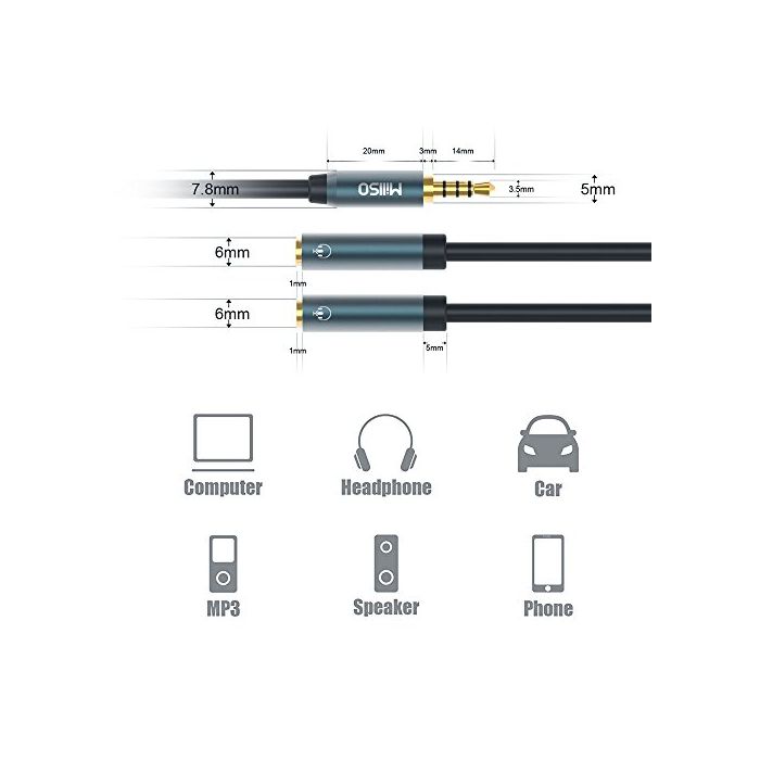 원본상품명: 3.5mmオディオ分配ケブル 音出力分岐コド イヤホンマイク機能搭載 ステレオミニY分岐ジャックコネクタケブル 4極メス*2-4極オス*1 延長コド 多用型