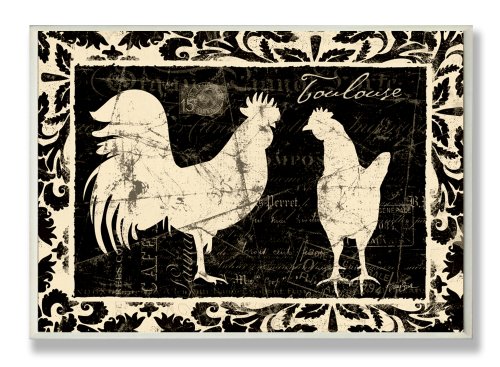 Stupell Home Décor Cream Roosters Black Kitchen Wall Plaque, 10 x 0.5 x 15, Proudly Made in USA