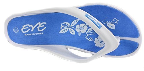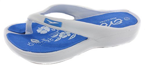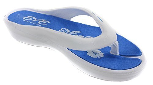 Binding : Apparel Product Description Eve womens flip flop comfort wedge sandals. These flip flops are a perennial customer favorite at Making Waves. They have a nice wedge for a comfort fit. They are lightweight and tropical. The hibiscus flower sole is especially pretty. You will love these flip flops for their design and comfort. They are available in black, aqua blue, purple and hot pink. They are available in US womens shoe sizes of 5, 6, 7, 8, 9 and 10/11. 0