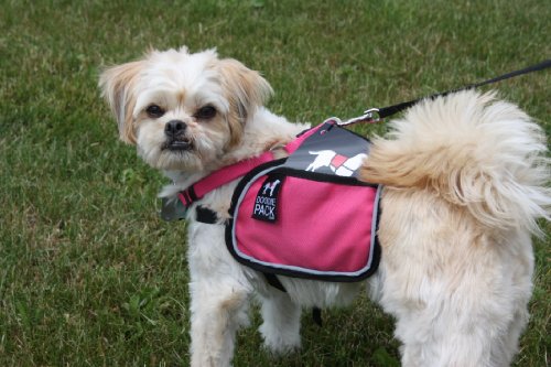 -. Feature : Adjustable chest & belly straps. Fits dogs 8-25 lbs. / Owner compartment for keys, waste bags & hand sanitizer / Lightweight durable nylon construction, reflective safety trim / U cut for harnessses and Easy grab handle for removal & storage / Contact us directly for monogramming: info@DoodiePack.com