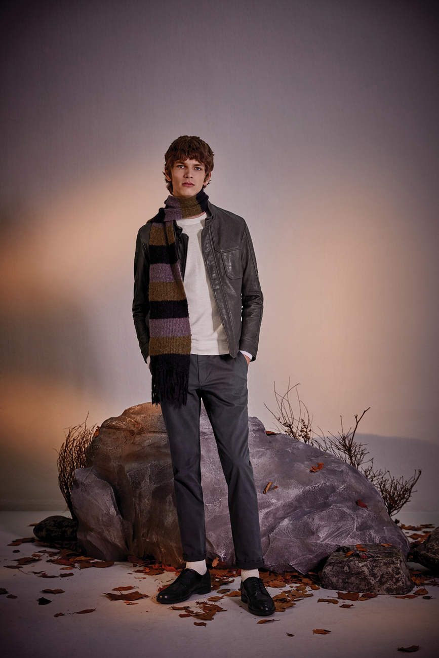 부드러운 터치감의 울/폴리에스터 소재를 사용한 사파리 점퍼