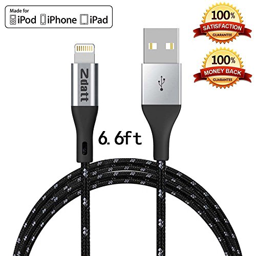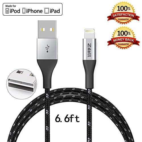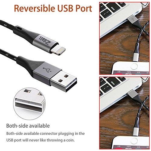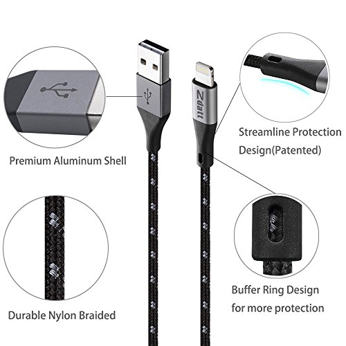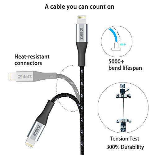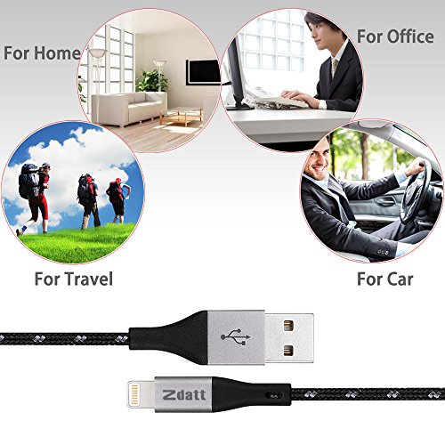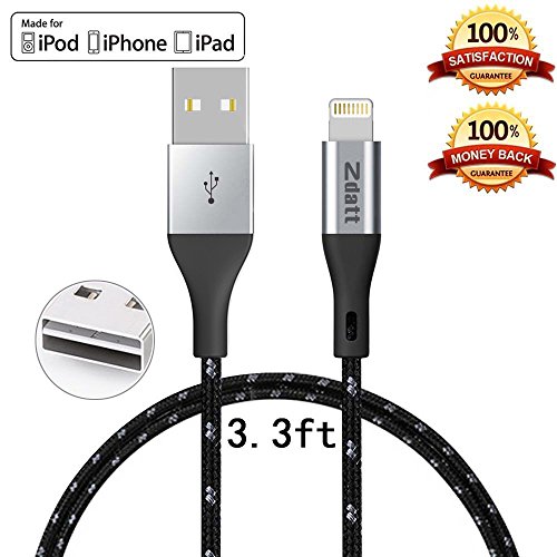 Zdatt 3.3ft/1M Nylon Braided 8 Pin Apple Lightning Cable MFi Certified Reversible USB Charging Sync Cable Cord Charger with Aluminum Connector for iPhone 5s/5/6/6s Plus/SE,iPad Mini/Air/Pro-Black