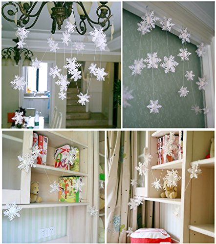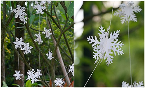 Quantity: 12 pieces snowflakes in a string; three different diameter:8cm 10cm 12cm; 4 piecs of each diameter