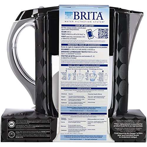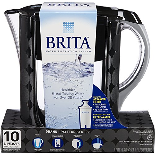 Drink healthier, great-tasting tap water with this BPA free Brita 10 cup water pitcher. With the Advanced filter technology, Brita cuts the taste and odor of chlorine to deliver great tasting water, and is certified to reduce copper, cadmium and mercury impurities, which can adversely affect your health over time. This bubbles black Brita pitcher has an ergonomic design which makes pouring easy. With the flip top lid, refilling is a breeze and just a glance at the electronic filter indicator lets you know when it is time to change the Brita replacement filter. This large water pitcher comes with 1 water filter, which should be changed every 40 gallons or about 2 months for best results. Start drinking healthier, great tasting water with Brita today.Feature