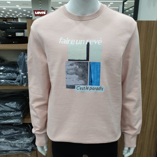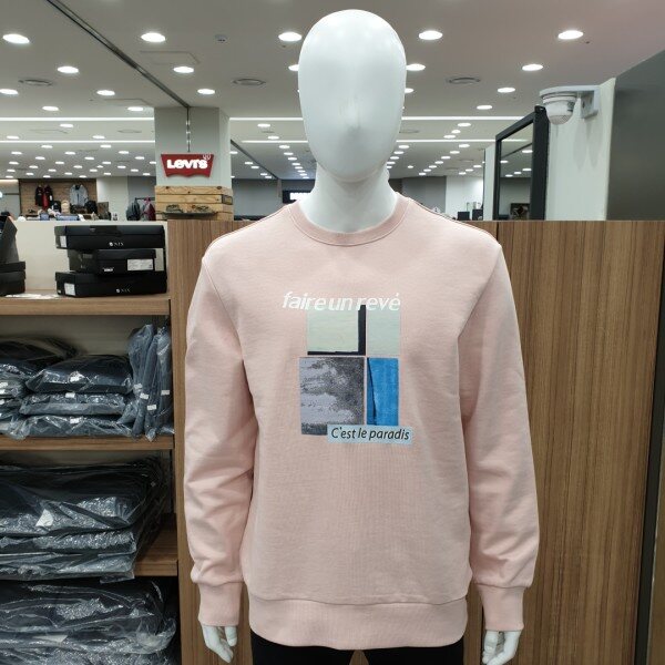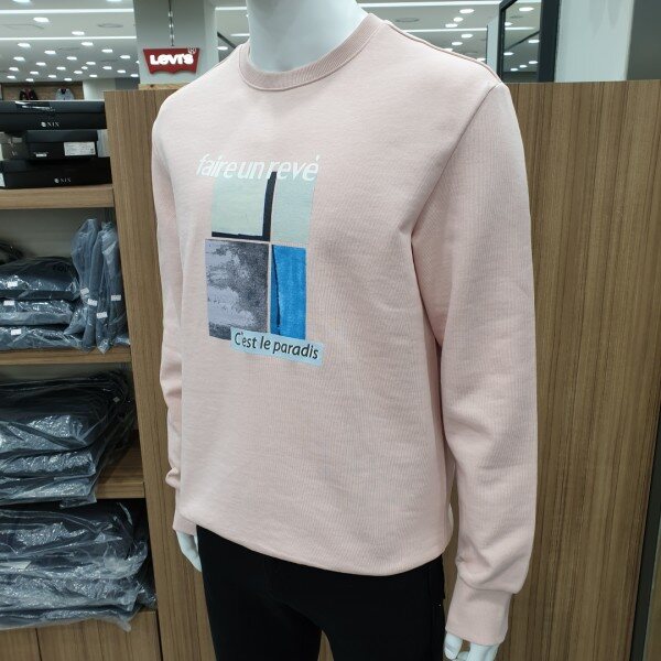 NIX 2019년 봄 신상 입니다. C/P 삼단쭈리 베이직핏. 프랑스 느낌의 모티브와 프랑스어를 활용한 디자인의 맨투맨 입니다. (의미: 희망을품다, 낙원을 꿈꾸다) 마네킹 100size 착용