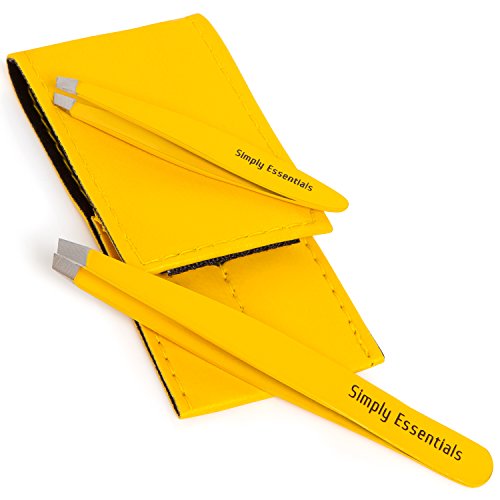 Tweezers Set - Professional Stainless Steel Yellow - Includes CASE and Ebook - Best Surgical Grade for Eyebrow pluckers, Ingrown Hair, Nose Hair and Splinters