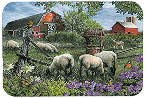 Caroline's Treasures PTW2026LCB Pleasant Valley Sheep Farm Glass Cutting Board, Large, Multicolor