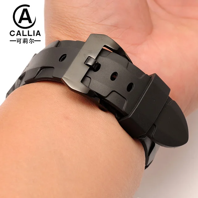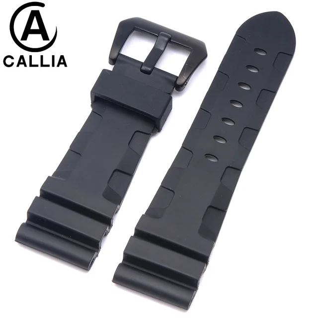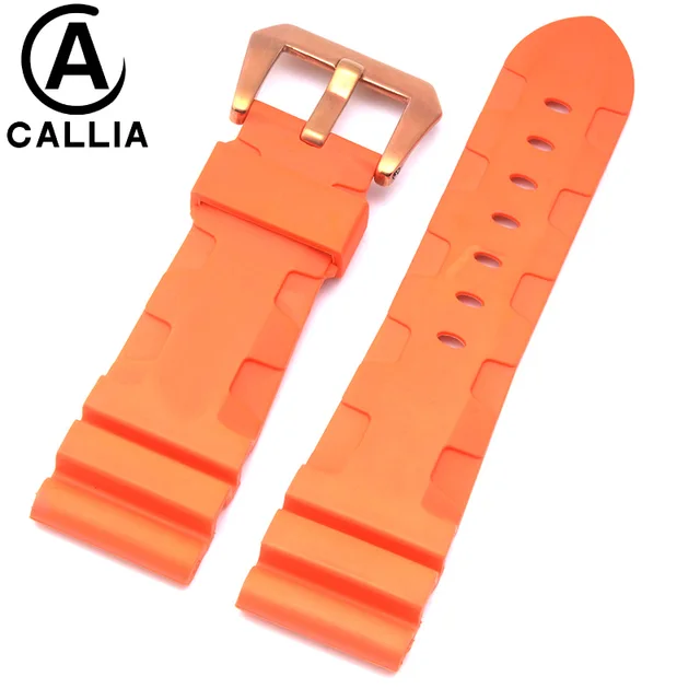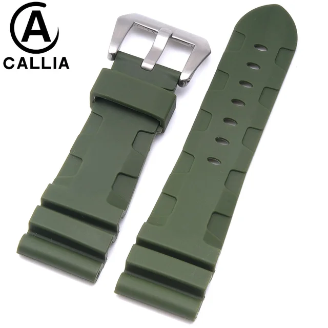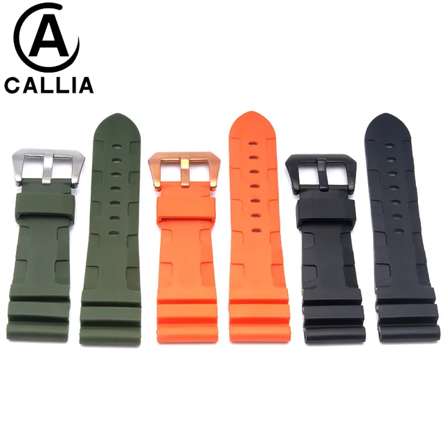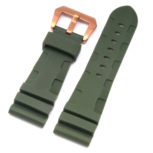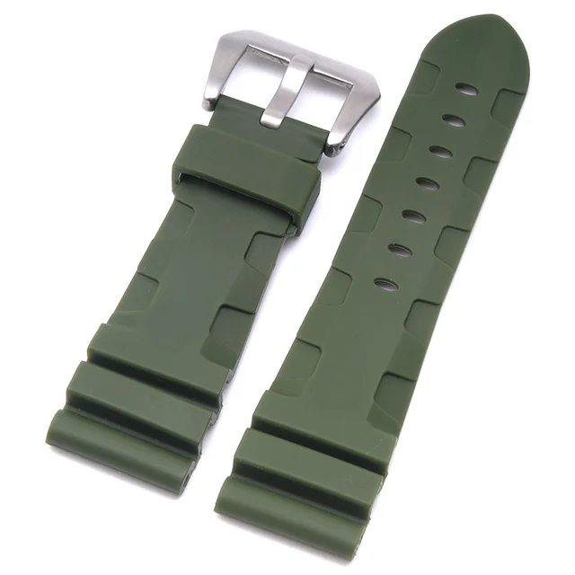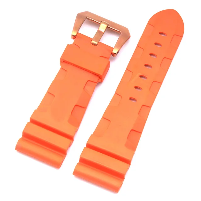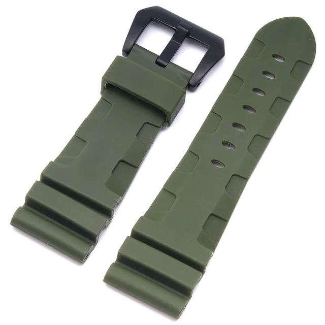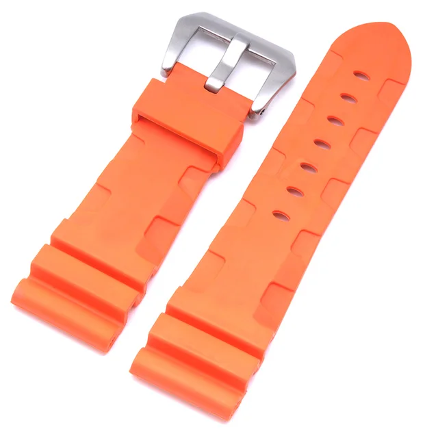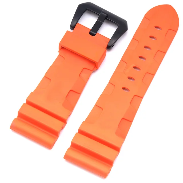 | [해외]높은 품질 24 미리메터 26 미리메터 망 방수 실리콘 고무 시계 줄 파네 시계 스트랩 밴드 블랙 orange 육군 녹색 |