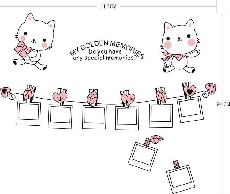 可移除墙贴纸 猫咪挂绳 创意照片贴照片墙墙贴相框墙纸贴画客厅