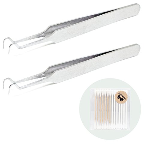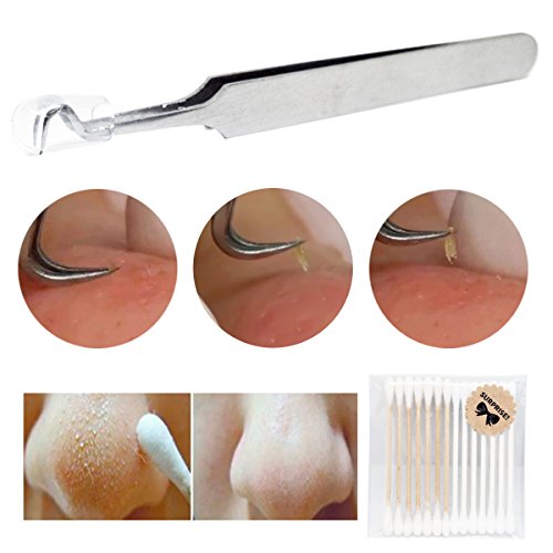 2 Pcs Easy Tool for Remove Whitehead Blackhead Acne Pimple - Stainless Steel Bend Curved Blemish Extractor (Free cotton bud travel pack)