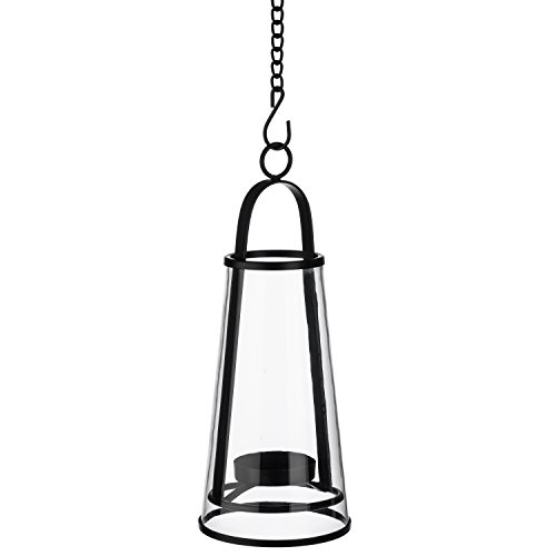Lantern is approximately 16 inches tall 6 inches wide.Black chain with a hook on each end for easy hanging is included