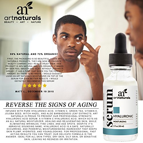 ArtNaturals Hyaluronic Acid Serum Best Anti Aging Skin Care Product for Face Clinical Strength With Vitamin C Serum, Vitamin E and Green Tea -Reduces...