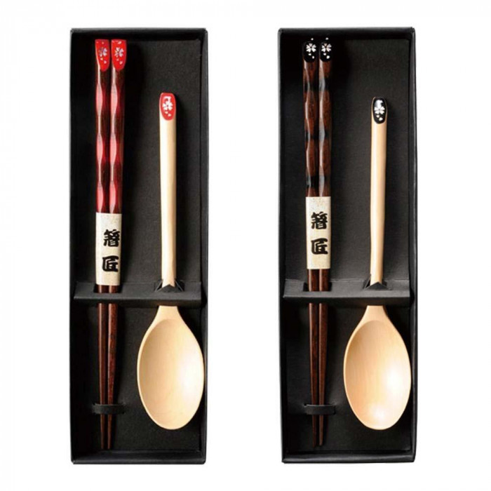 | 天然木で作られた、温かみが感じられるカトラリーセットです。箸とスプーンの2点セットで、艶が美しい上品な仕上がりです。 |