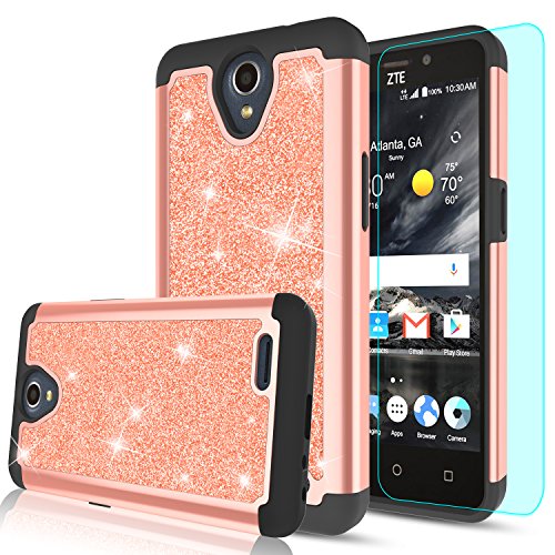 -. Title : ZTE Prestige 2 Case,ZTE N9136 Case with HD Screen Protector for Girls Women,LeYi Luxury Glitter Cute Design [PC Silicone Leather] Dual Layer Protective Phone Case for ZTE Prestige 2 N9136 - Rose Gold