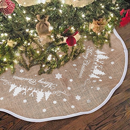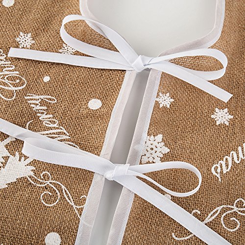 Hootech Christmas Tree Skirt 48 Inch Burlap Tree Skirts Ornaments Xmas Decorations White Snowflake Printed for Christmas Party (48"/122cm)