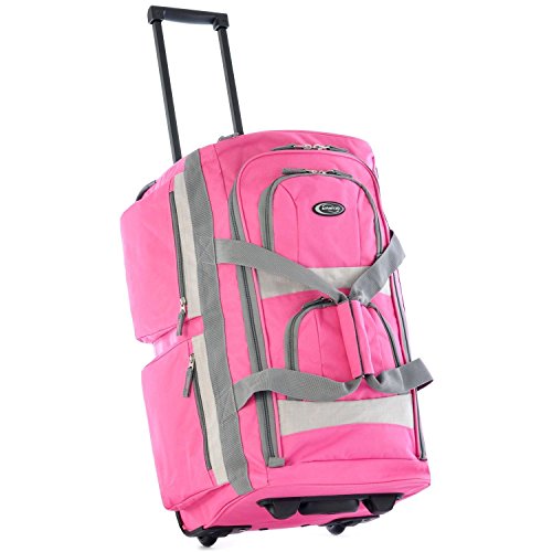 -. Feature : Hot Pink Carry On Duffel Bag, Lightweight, Rolling, Sport Bag, Polyester / Dimension: 22 inches wide x 12 inches high x 12 inches deep / This polyester duffle bag rolls effortlessly through hotel lobbies and airport terminals. It features a retractable handle for swift maneuvering through airport terminals, train stations, and other transportation hubs. This lage is sized to meet carry- / Material: Polyester / **ITEM INCLUDES Exclusive DIAMOND HOME EBOOK**