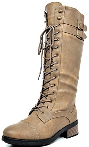 -. Title : DREAM PAIRS GEORGIA Women's Winter Knee High Fur Lining Lace Up Buckles Combat Boot