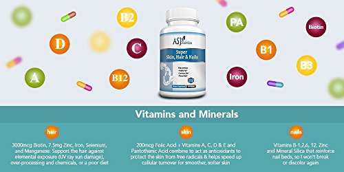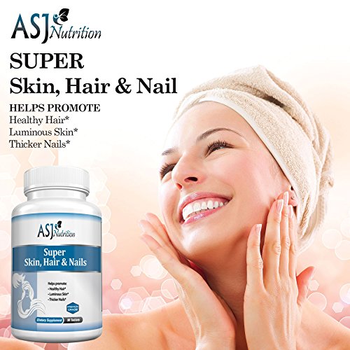 ASJ Nutrition's Super Hair Skin & Nails Vitamins - Supplements for Men & Women Have thinning hair or notice it falling out when you brush it? Suffer from weak nails