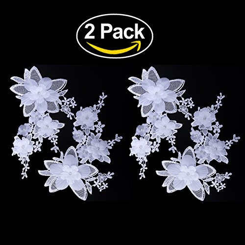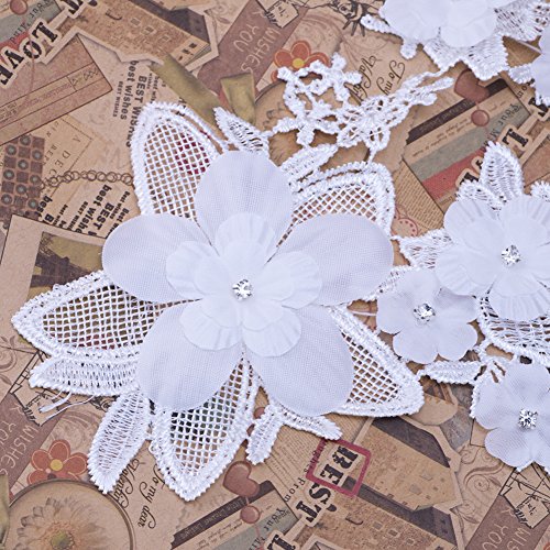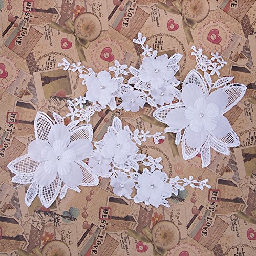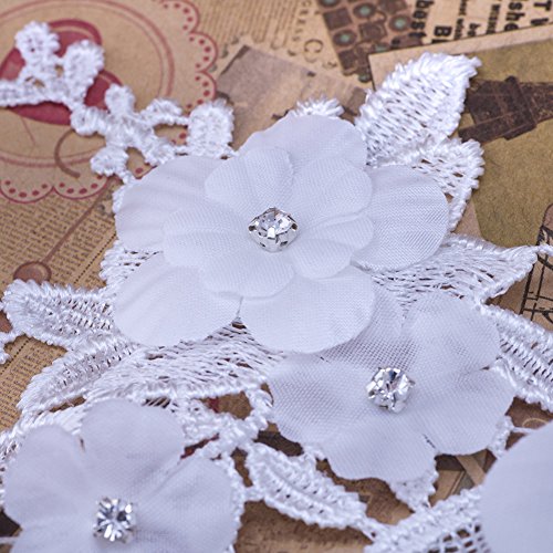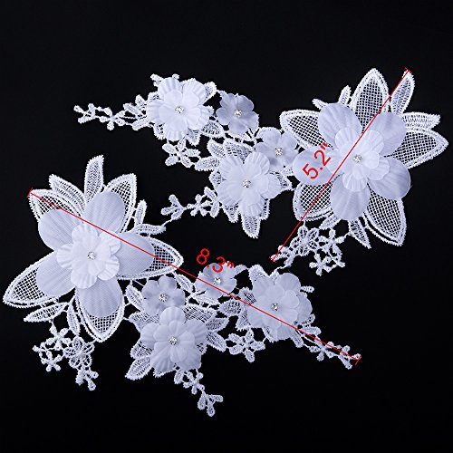 Shevalues 2Pcs White Rhinestone Floral Corded Embroidery Lace Applique Motif