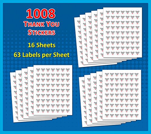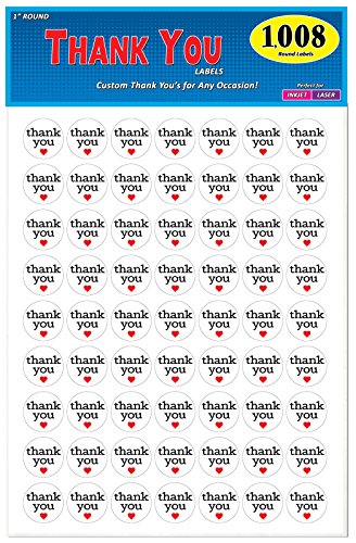 1" Diameter, 1008 adhesive labels. Thank you stickers with black print and red heart.