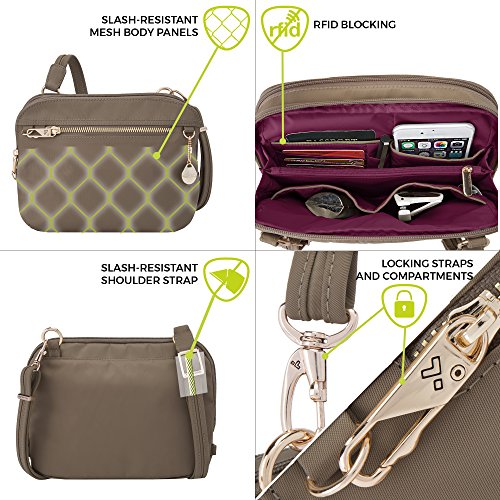 Full Anti-Theft features including 2 locking compartments, slash-resistant construction, and slash-resistant carry strap secures to stationary object