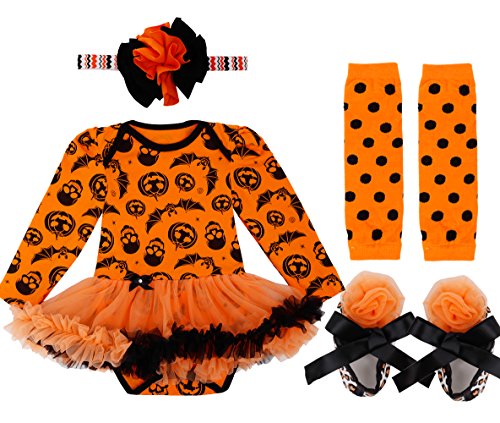-. Title : CHICTRY Baby Girls Halloween Party Outfits Pumpkin Tutu Romper Headband Leg Warmer Shoes Set