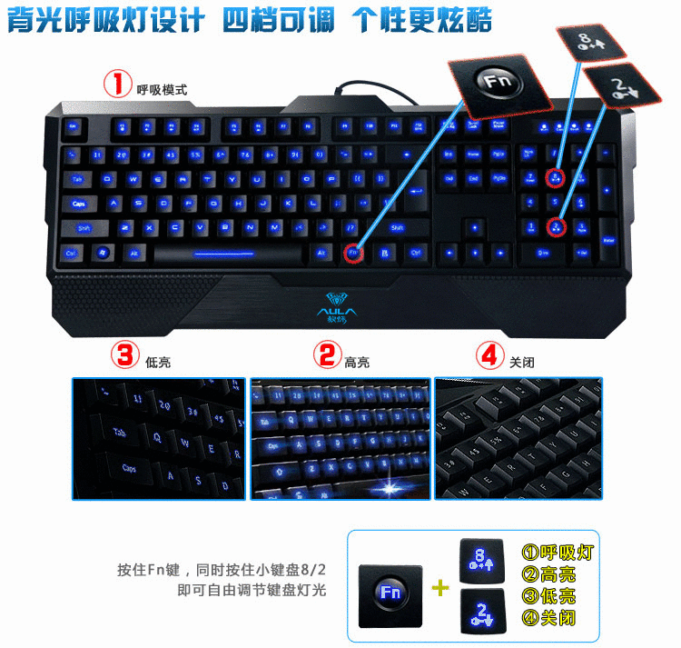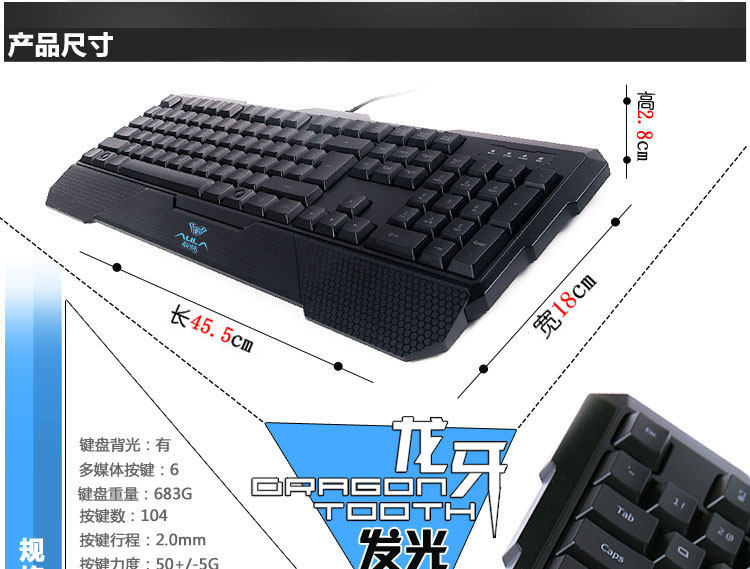 狼蛛龙牙背光键盘 有线USB游戏键盘 龙牙键盘 LOL专业键盘